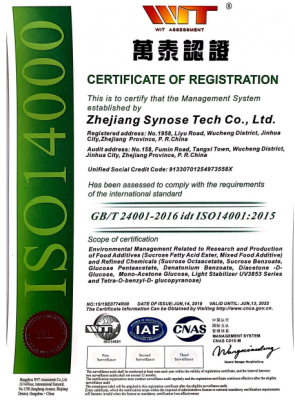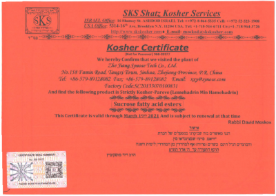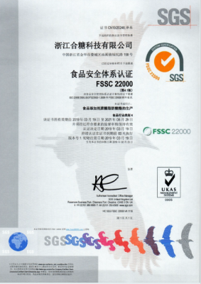 公司被評為“國家高新技術(shù)企業(yè)”,并有多個產(chǎn)品獲得“國內(nèi)發(fā)明專利”,通過了FSSC22000食品安全體系認(rèn)證,ISO14001環(huán)境管理體系,MUI HALAL認(rèn)證,SKS KOSHER認(rèn)證,ISO9001質(zhì)量管理體系和ISO22000食品安全管理體系認(rèn)證,并有多個產(chǎn)品通過了“歐洲REACH法規(guī)”注冊和“韓國REACH法規(guī)” 預(yù)注冊。